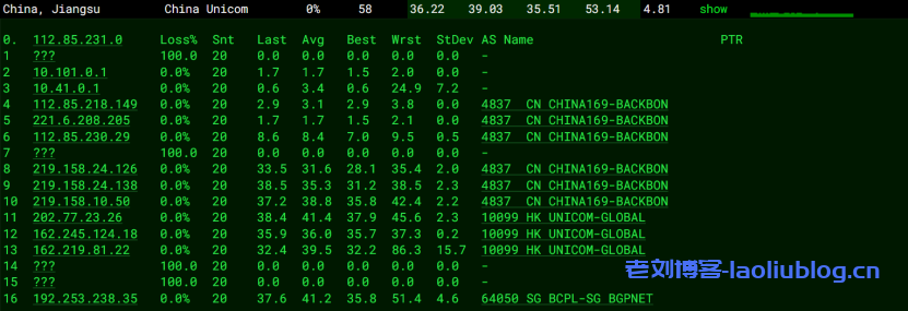 联通去程:走的联通骨干线路直连香港。