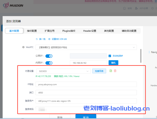 代理设置中,选择socks5代理,输入账密认证的信息,点击【检查网络】,测试成功后会提示IP相关信息,说明MuLogin配置成功。
