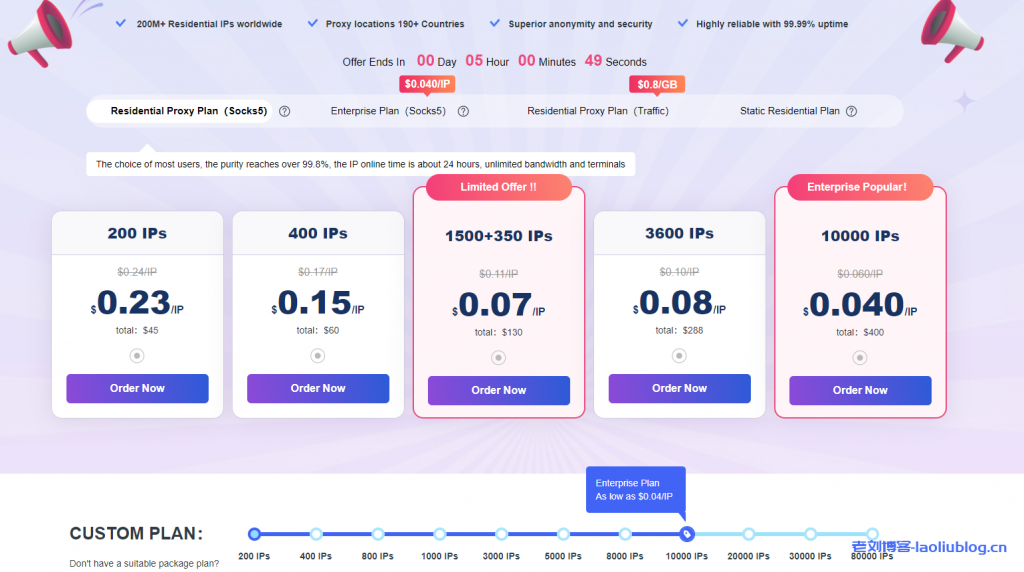 C. “企业计划(SOCKS5)” 根据IPs计划,IP越多价格越低,用CDK转售也方便。