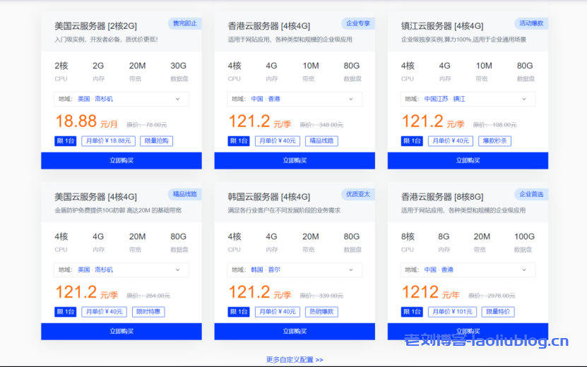 | 美国云服务器 | 2核 | 2G | 20M | 30G | Linux/Windows | 18.88元/月 |