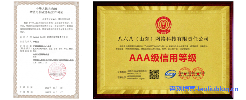 国家工业信息化部颁发的许可、及评为AAA级信用企业
