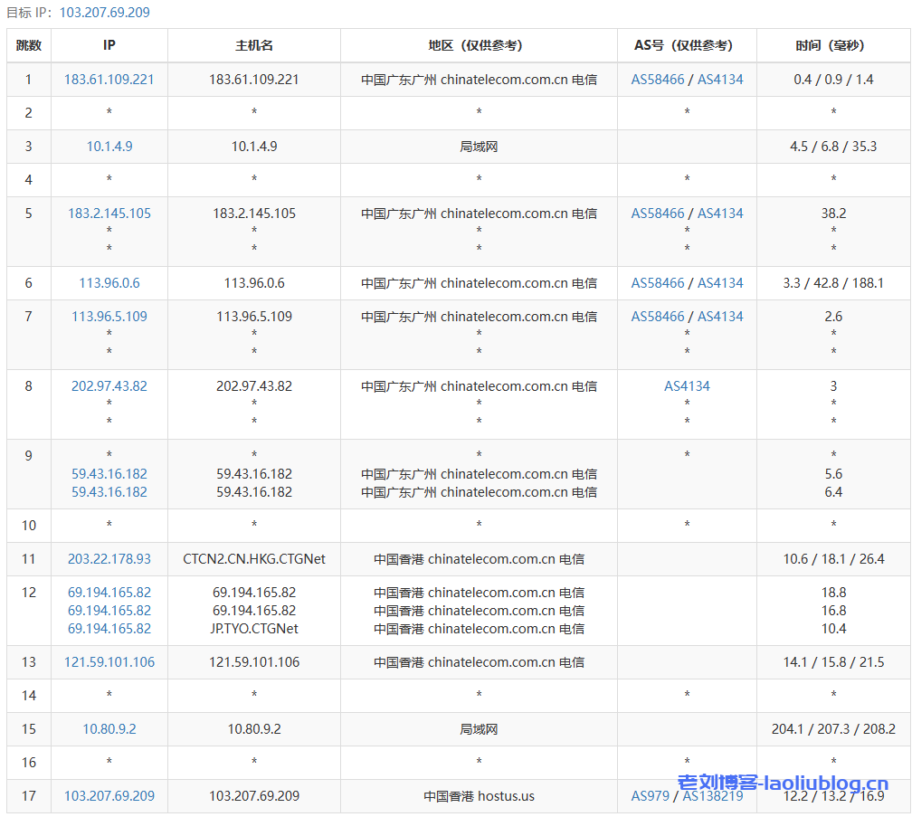 6 69.194.165.89 2.53 ms * China, Hong Kong, ChinaTelecom
