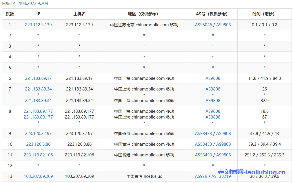 6 223.120.22.69 2.24 ms AS58453 China, Hong Kong, ChinaMobile