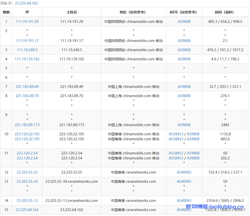 11 221.183.95.214 161.23 ms AS9808 China, Shanghai, ChinaMobile