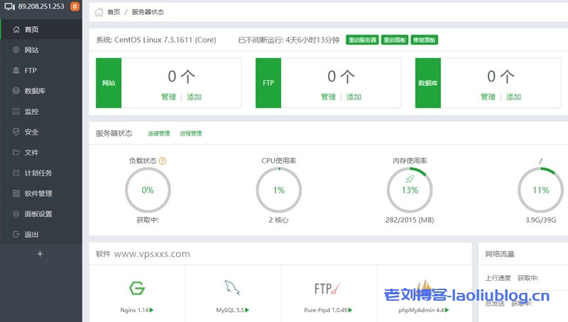 安装宝塔面板并配置默认的LNMP环境之后,占用了282M的内存,3.9GB的硬盘。三网除了移动去程,往返都是CN2 GIA线路。