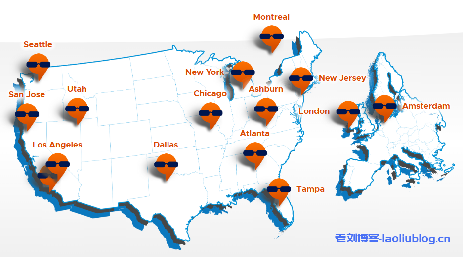 最后,为了更直观地了解商家节点分布,这里贴下RackNerd机房节点分布图: