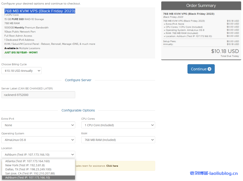 顾名思义就是RackNerd去年黑五促销768MB内存款。可选机房同样包括美国亚特兰大、纽约、达拉斯、圣何塞和阿什本。