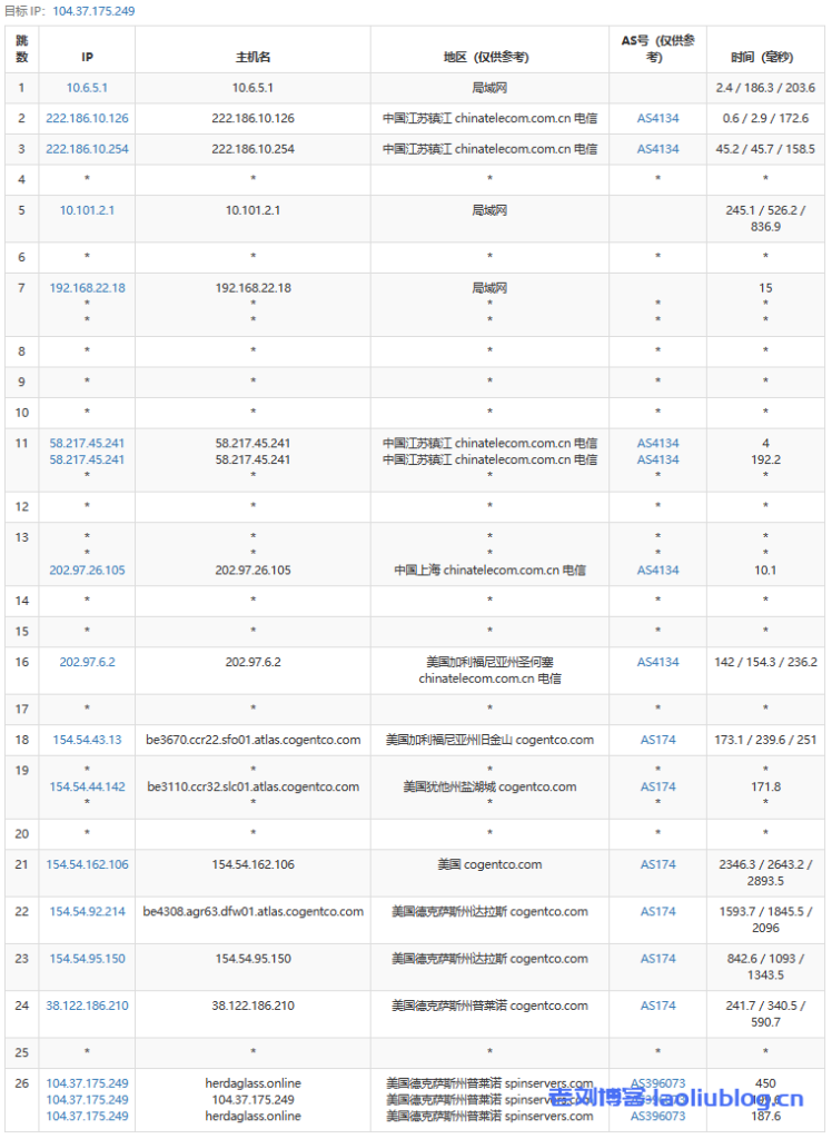 11 38.104.85.162 499.18 ms AS174 United States, California, Los Angeles, cogentco.com