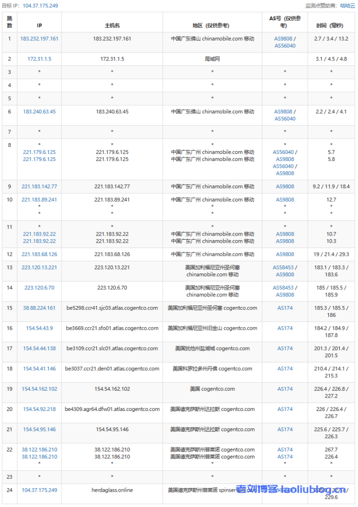 21 120.197.234.140 211.29 ms AS56040 China, Guangdong, Guangzhou, ChinaMobile