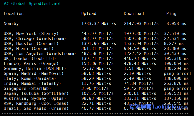 前面文章《SpinServers美国服务器五一特惠套餐,圣何塞/达拉斯机房,$79/月/2*E5-2630Lv3/128G内存/1.6T NVMe/1Gbp带宽不限流量》推介了SpinServers五一套餐,目前活动仍有有效,站长这里选取了美国达拉斯美国服务器Dual Intel Xeon E5-2630L v3 (64GB) (1TB NVMe)进行了服务器测评,结果如下,不多说自己看~