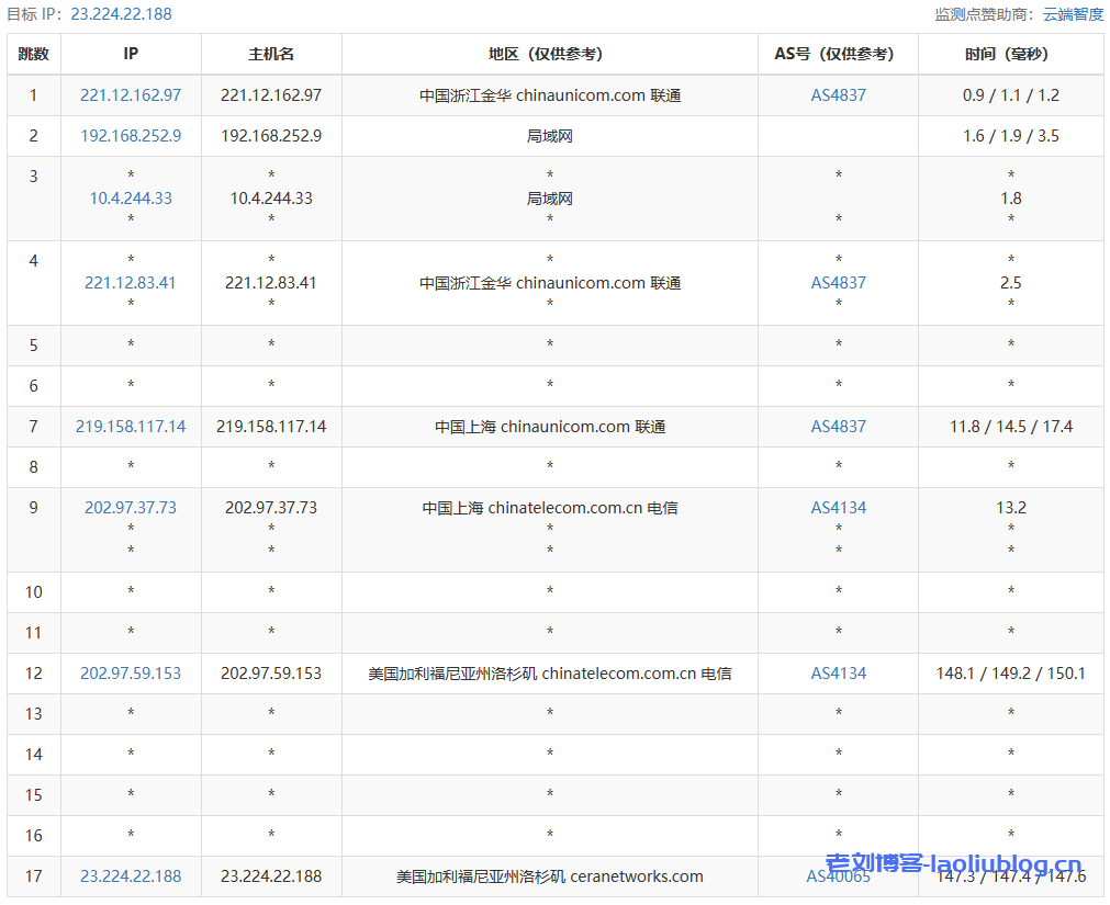 13 61.149.212.242 173.42 ms AS4808 China, Beijing, ChinaUnicom