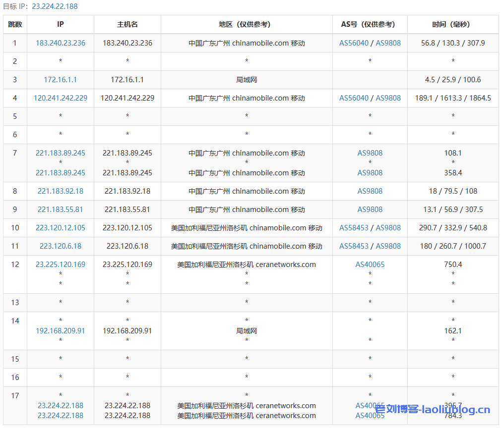 16 211.136.214.133 186.36 ms AS56040 China, Guangdong, Guangzhou, ChinaMobile