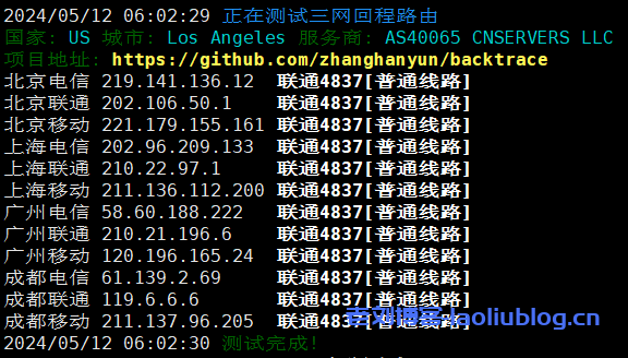 六六云怎么样?测评六六云洛杉矶4837线路VPS【美国原生IP/CU4837/G口】如下: