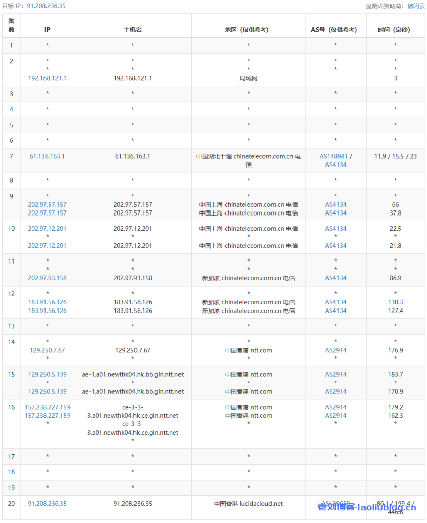 18 61.14.201.122 5.87 ms * China, Hong Kong, ChinaUnicom