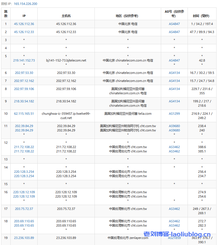 14 220.128.26.5 2.42 ms * China, Taiwan, Taipei City, cht.com.tw