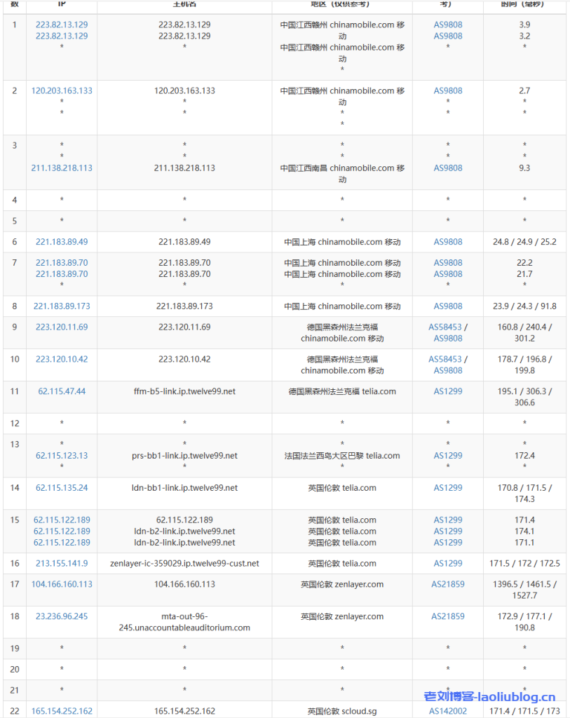 22 211.136.25.153 176.76 ms AS56048 China, Beijing, ChinaMobile