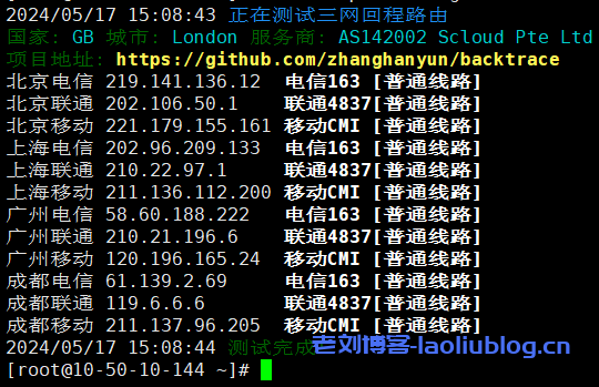 回程路由追踪测试