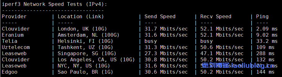 iperf3的部分国际热门节点测试: