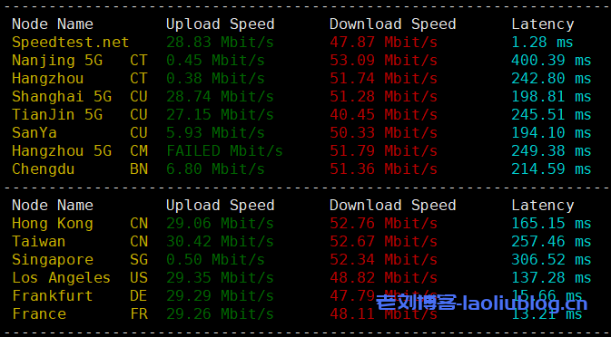 国内外多节点测试下带宽上下行,大致效果: