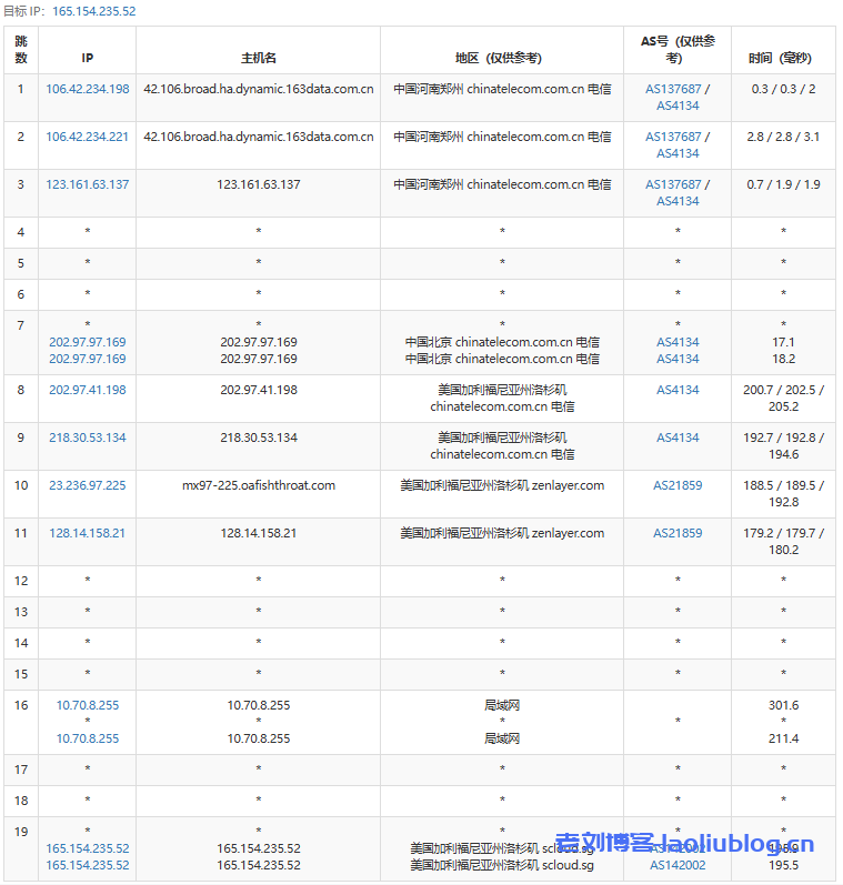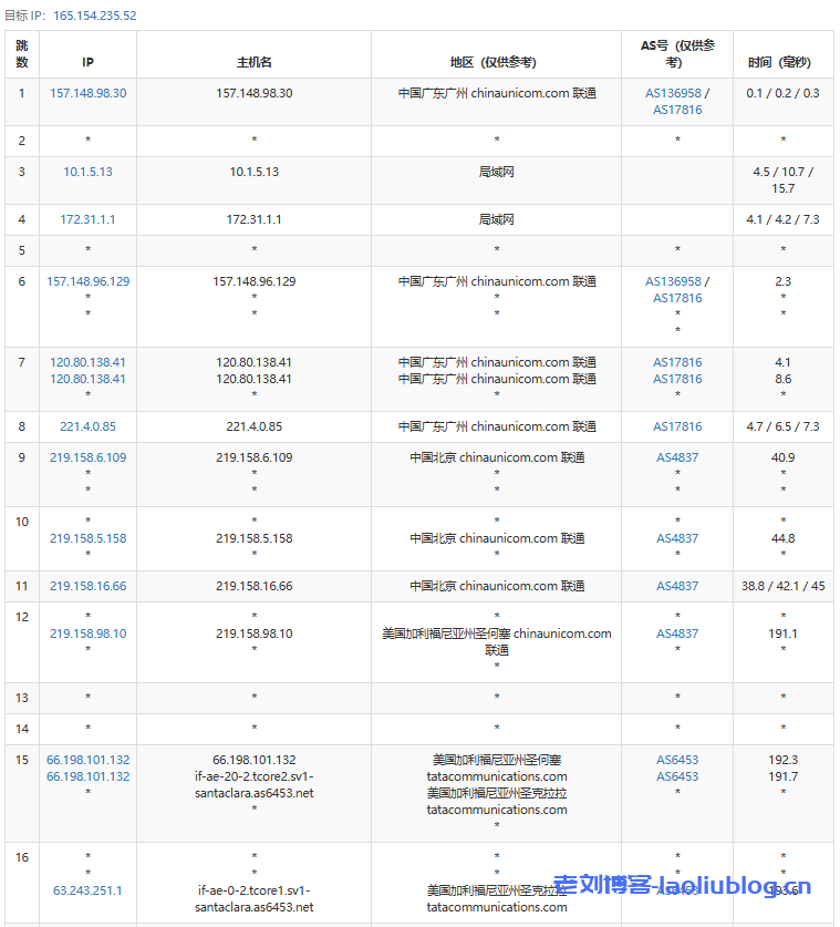 10 219.158.45.181 186.63 ms AS4837 United States, California, Los Angeles, ChinaUnicom