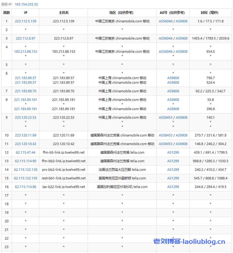 14 223.119.66.113 143.07 ms AS58453 United States, California, Los Angeles, ChinaMobile