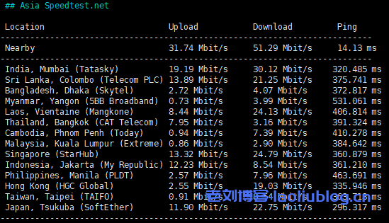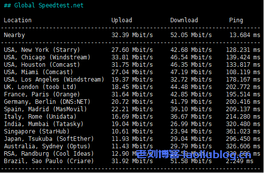 SurferCloud巴西圣保罗轻量云VPS测评数据: