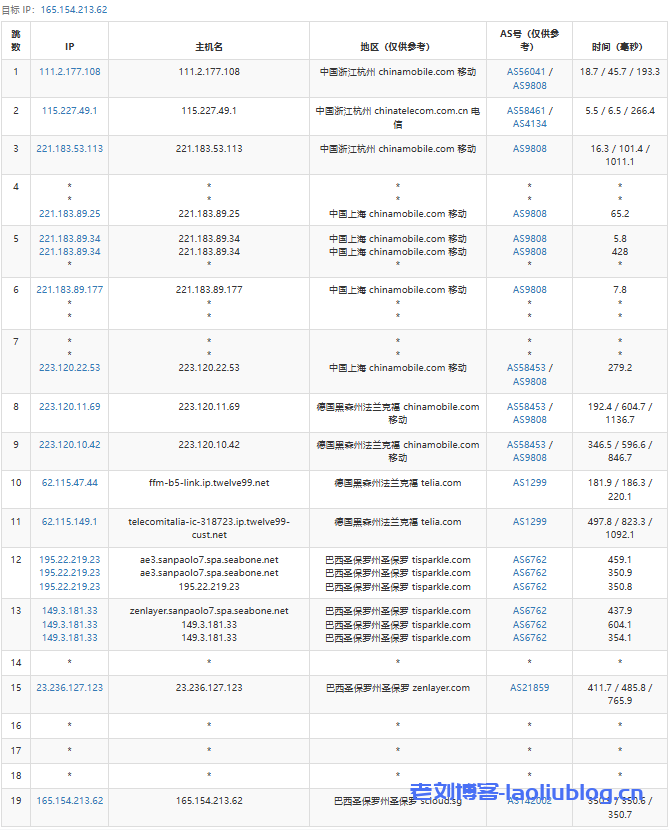 19 211.136.95.226 369.62 ms AS56048 China, Beijing, ChinaMobile