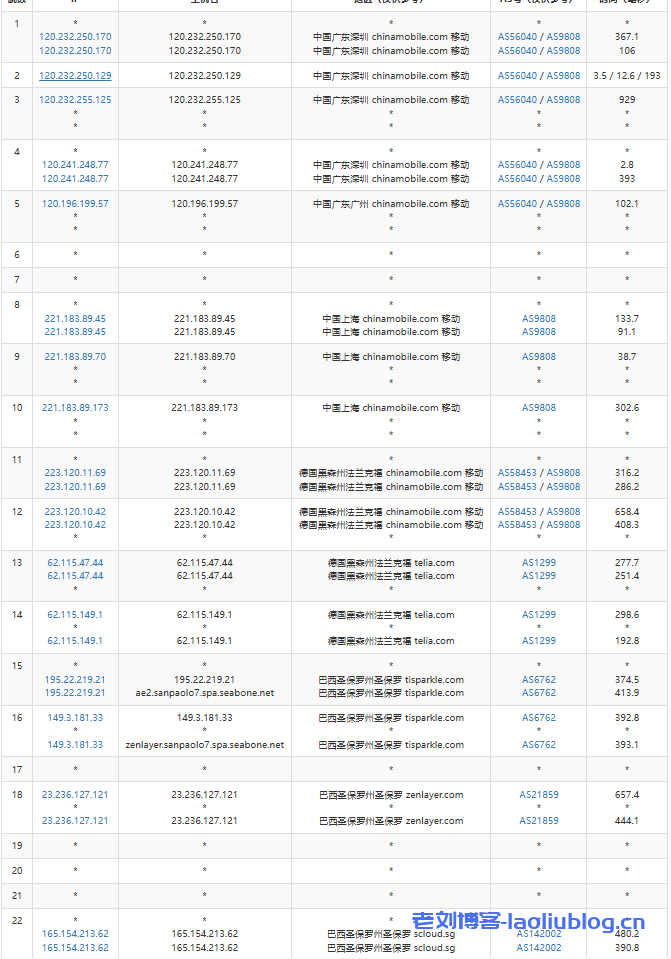 12 221.183.92.21 361.64 ms AS9808 China, Guangdong, Guangzhou, ChinaMobile