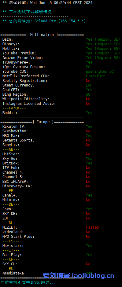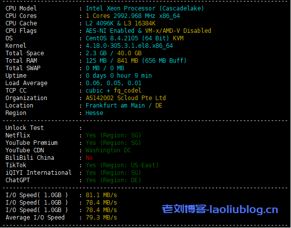 配置信息与解锁流媒体情况,支持tiktok/chatgpt,磁盘IO在79MB/s左右