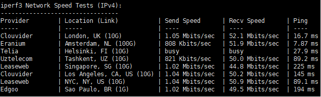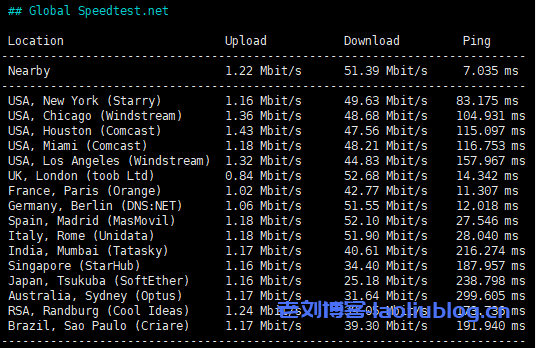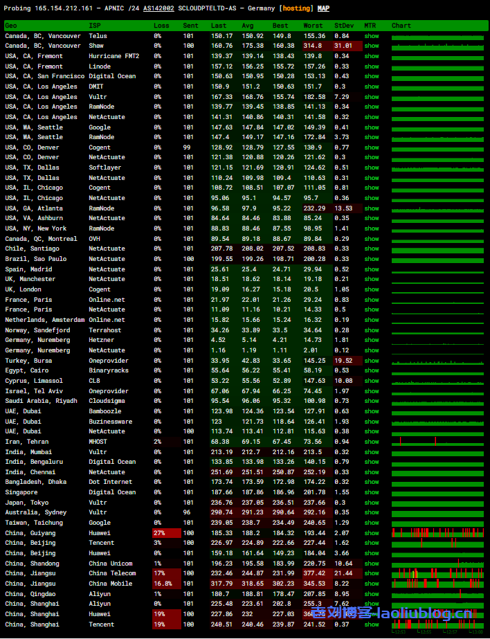 全球部分节点测速