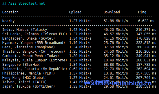 亚洲部分节点测速