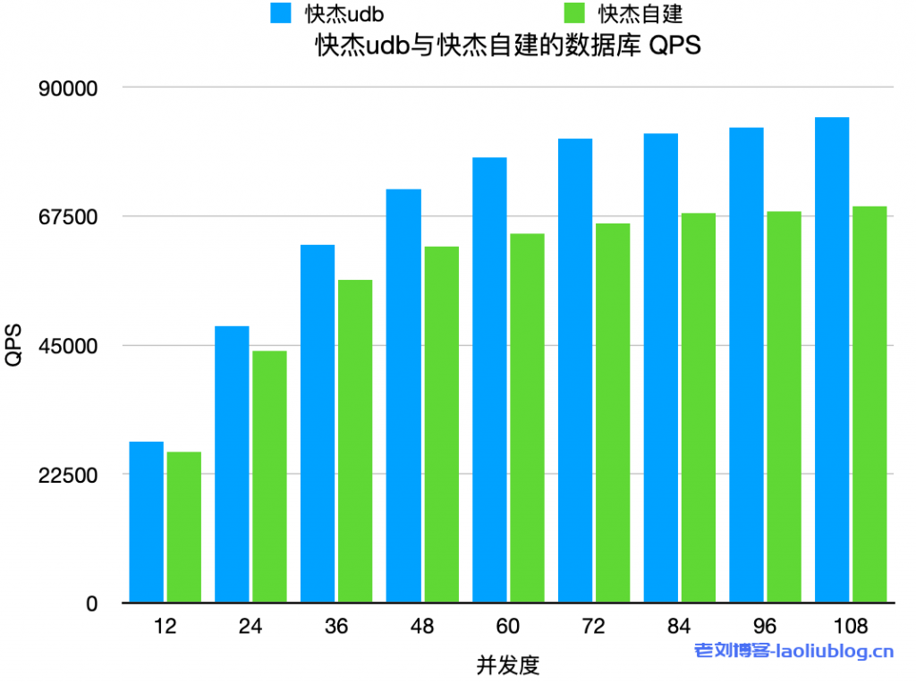 从测试结果上来看,qps基于快杰的UDB性能比基于快杰自建的数据库性能要好20%以上。