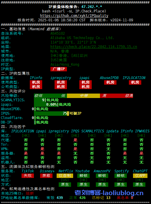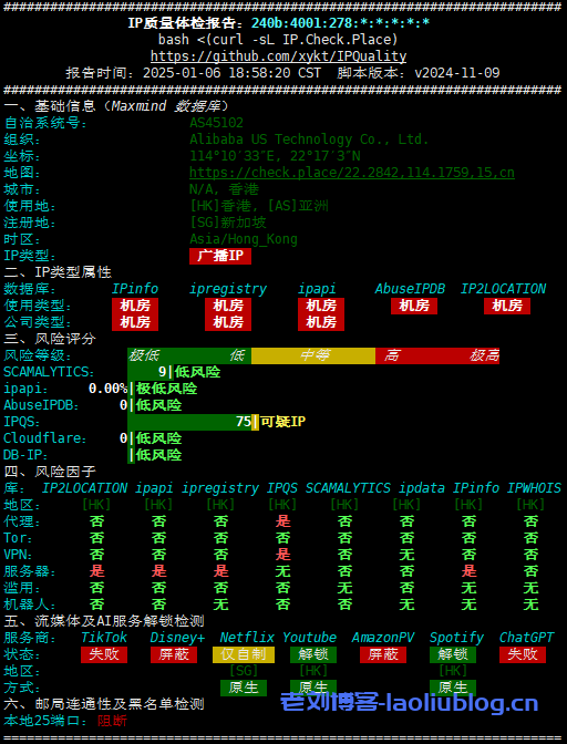 首先看看IP质量体检报告,IPv4