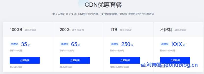 莱卡云还提供多种CDN优惠套餐,帮助用户加速网站访问速度,提升用户体验。