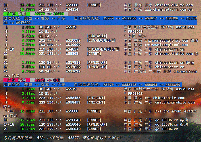 AS4134-(电信4134骨干网) AS58807-(移动精品CMIN2)
