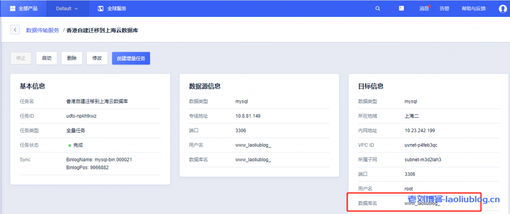 以上完成了UCloud香港快杰云主机自建数据库向UCloud上海云数据库迁移过程,这里还没有完全结束,毕竟我还要让老刘博客站点使用上海云数据库来运行。那么如何调用刚刚拷贝了的上海云数据库中www_laoliublog_数据库呢?因老刘博客站点是通过wordpress搭建的,这里需要修改站点根目录下wp_config.php文件。