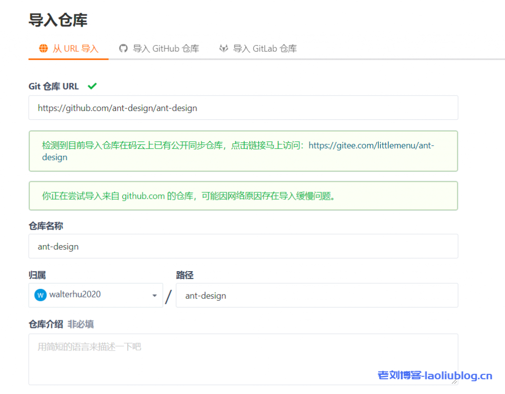 在导入页面中粘贴你的Github仓库地址,点击导入即可: