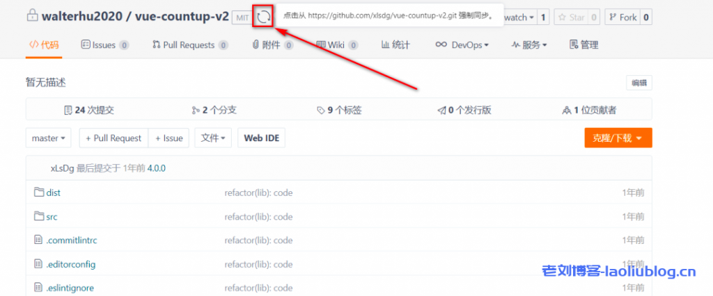 等待导入操作完成,然后在导入的仓库中下载浏览对应的该 GitHub 仓库代码,你也可以点击仓库顶部的“刷新”按钮进行 Github 代码仓库的同步。