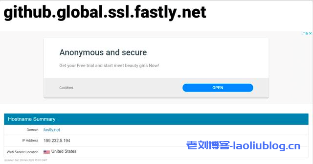 第一步:获取 github 的 global.ssl.fastly 地址访问:http://github.global.ssl.fastly.net.ipaddress.com/#ipinfo 获取cdn和ip域名: