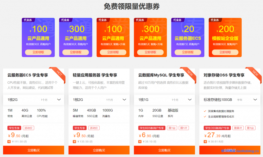 | 云服务器实例 | CPU/内存/带宽配置 | 活动优惠价格 |