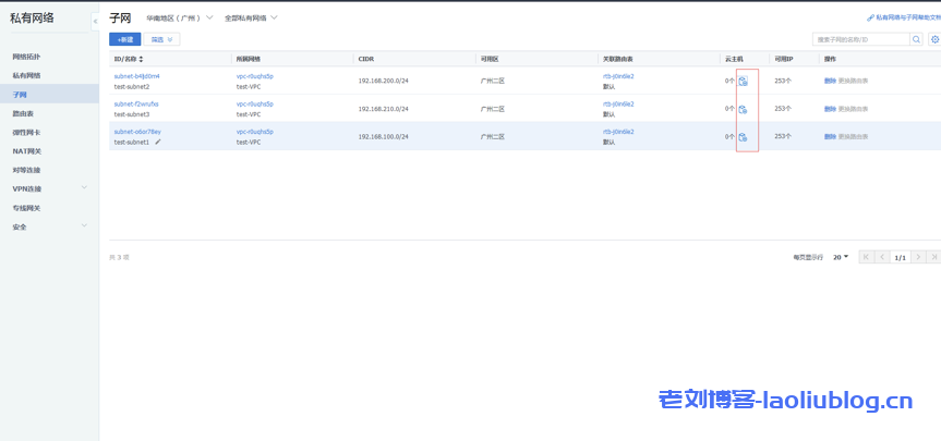 1.先创建一个VPC,然后创建其他资源(子网、云主机、路由表),入口在对应资源列表处,不在VPC内。创建成功的其他资源和VPC是通过在列表上的超链接实现绑定关系,通过链接可以知道该资源属于哪个VPC,该VPC有哪些资源。并没有显示的在VPC里实现所有资源的操作。