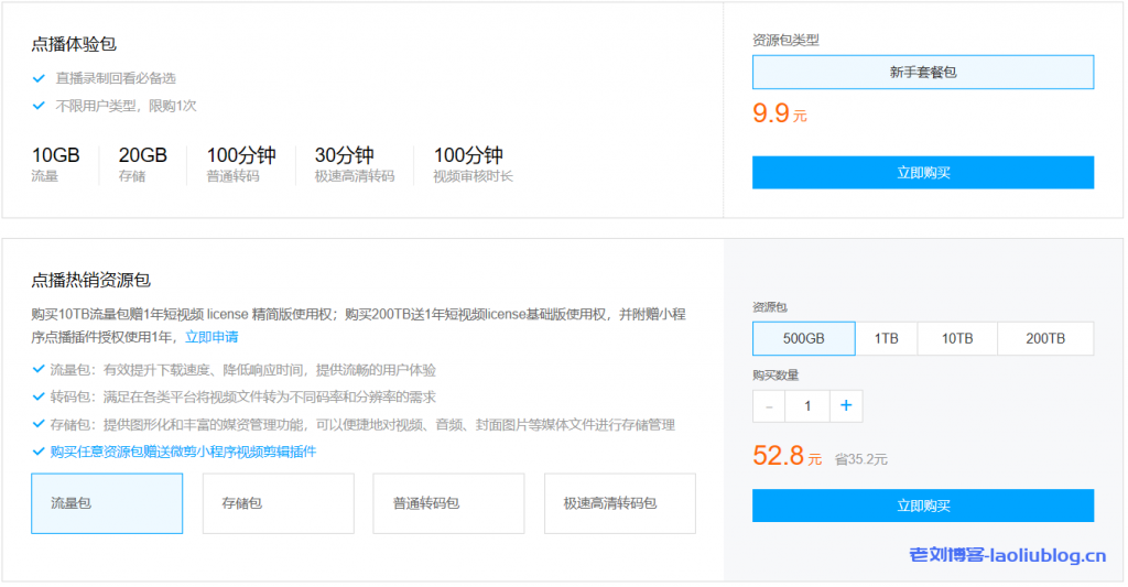 低至75折,助你快速发展音视频直播点播业务。10GB云点播体验包9.9元,500GB点播热销资源包52.8元。