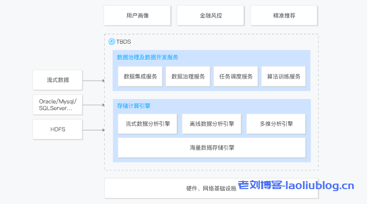 腾讯大数据处理套件(Tencent Big Data Suite,TBDS)是基于腾讯多年海量数据处理经验,对外提供的可靠、安全、易用的大数据处理平台。你可以借助 TBDS 在公有云、私有云、非云化环境,根据不同数据处理需求选择合适的大数据分析引擎和相应的实时数据开发、离线数据开发以及算法开发服务,来构建您的数据仓库、用户画像、精准推荐、风险管控等大数据应用服务。