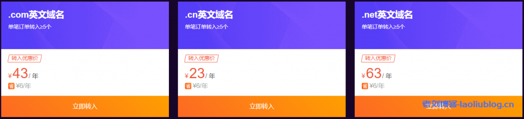 .com英文域名,单笔订单转入≥5个,转入优惠价43元/年;