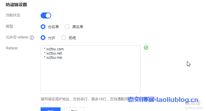 同时设置一下防盗链规则,允许列出的域名才能访问CDN的文件。