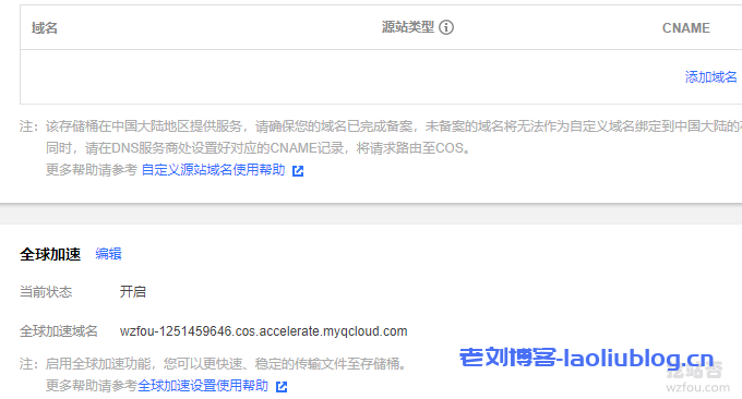 默认的腾讯COS是没有开启全球CDN加速的,需要自己手动开启。