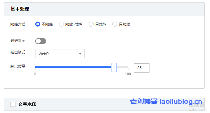 在腾讯云COS的“图片处理”中,可以设置图片裁剪、缩放以及转换格式、添加水印等。