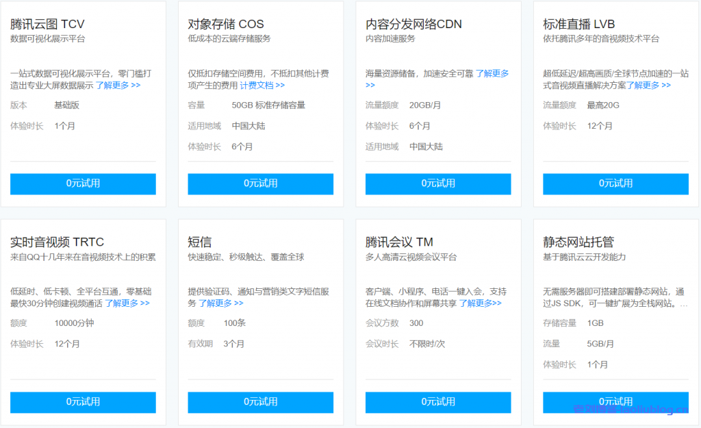 本活动为长期活动订单型产品每天9:00开放领取,其余产品每天0点开放领取。活动对象1. 通过大陆地区个人实名认证的用户;2. 已购买、体验过对应腾讯云产品(包括包年包月和按量付费)的用户不能参加该活动;3. 符合活动条件的同一用户仅能对每个产品申请一次。同一用户是指:在腾讯云注册、登录、使用过程中的实名认证信息、手机号、邮箱、设备或地址如果一样,则视为同一用户;4. 协作者、子用户不能参与该活动。