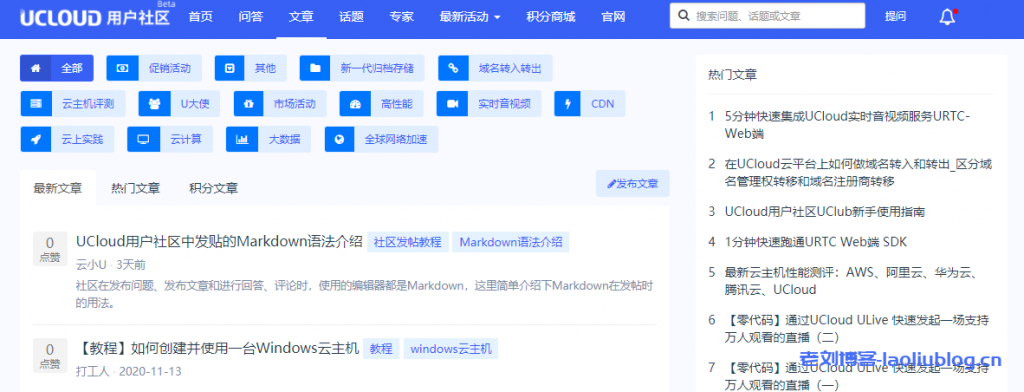 老刘博客在前文《UCloud用户社区即将发布,写问答发文章均可换赠金》中,有提前预告了UCloud优刻得推出的UCloud用户社区的动向,今天老刘看到UCloud已经在起官网不同位置投放了UCloud用户社区入口,那么此次上线的UCloud用户社区Beta版都有哪些值得关注的地方呢?总结一句话:可以在社区中赚积分兑换UCloud产品代金券。前往社区>>