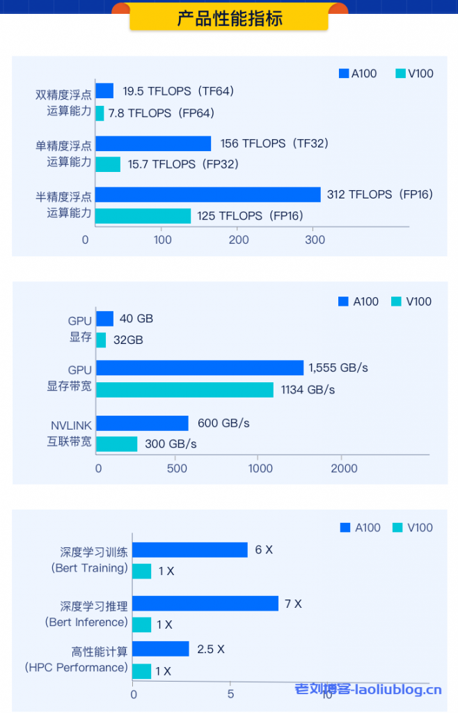 NVIDIA A100显卡的GPU云服务器产品性能指标如下图: